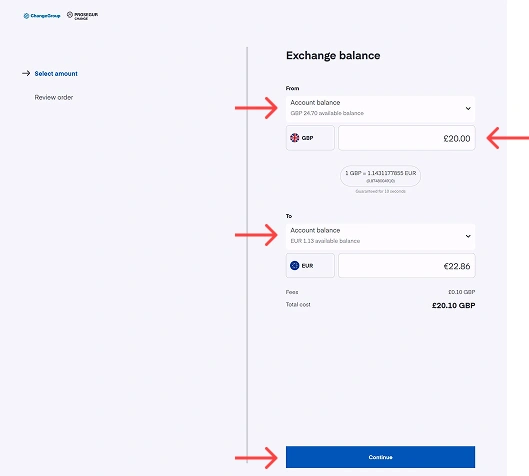 - Välj det saldo du vill växla från