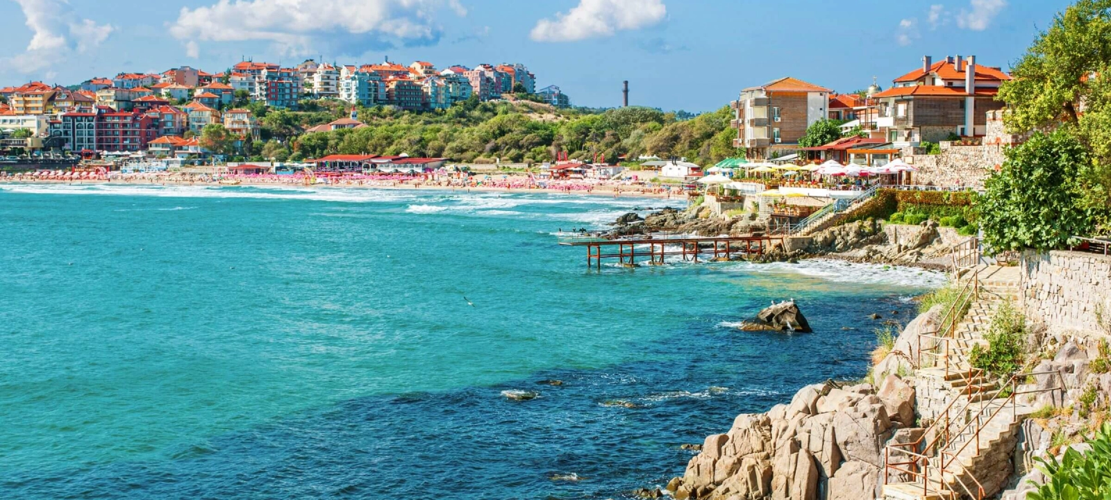 - Bulgariens populära sommarstad Varna ligger cirka 90 kilometer från Sunny Beach, och det är också landets största stad. Om du vill ha en förändring för din semester, bör du definitivt besöka här. I Varna hittar du en gågata full av små butiker, restauranger och kaféer. I stadsparken kan du njuta av färgglada blommor och gröna omgivningar.